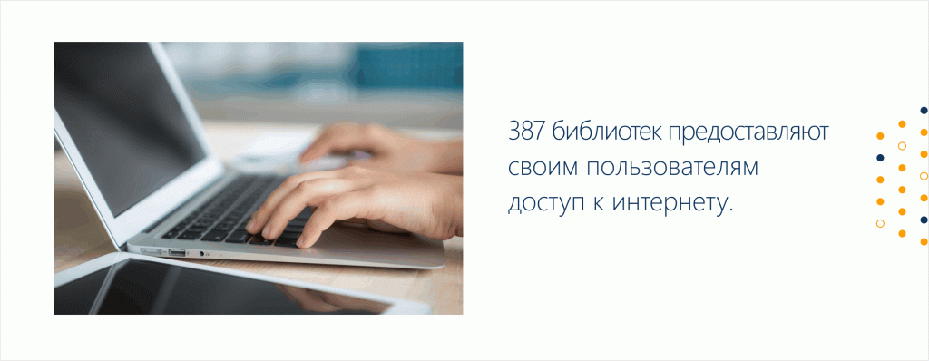 442 библиотеки (98 % от их общего числа) подключены к сети Интернет.